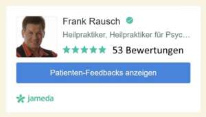 Ich bin Heilpraktiker für Psychotherapie und damit gegen jede Form unseriöser Heilversprechen. Meine Webseite mit über 100 Feedbacks & vielen, positiven Bewertungen und meine persönliche Beratung, sollen Ihnen helfen, die bestmögliche Wahl zu treffen, um Heilung, Linderung oder Problemlösungen zu erfahren. Lassen Sie sich daher am besten von mir persönlich beraten, ob und wie ich Ihnen mit meinen Methoden helfen kann.